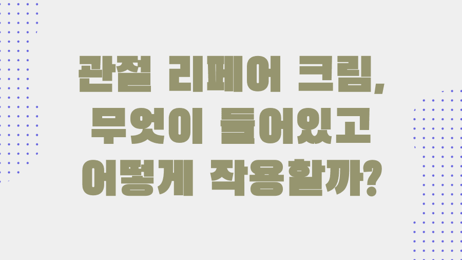 관절 리페어 크림, 실제 효과는 어떨까요?
